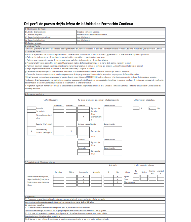 Perfil del jefe de Unidad Formación Continua