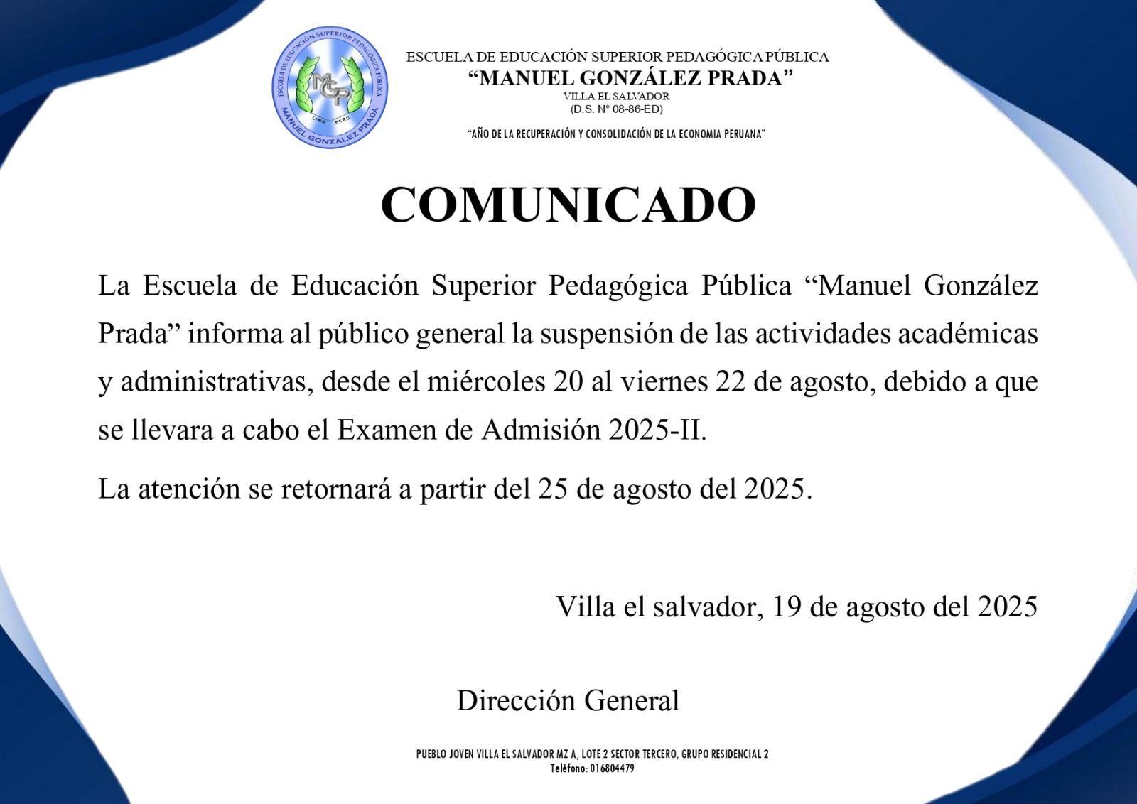 19 agosto Suspensión de actividades académicas y administrativas por Examen de Admisión 2025-II Read More